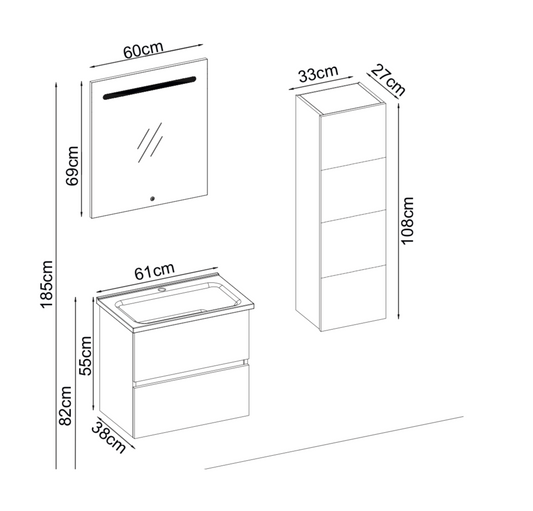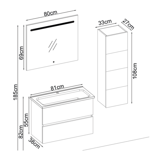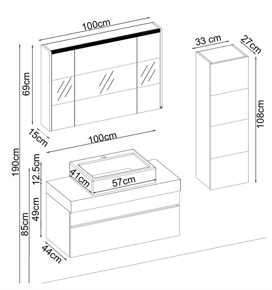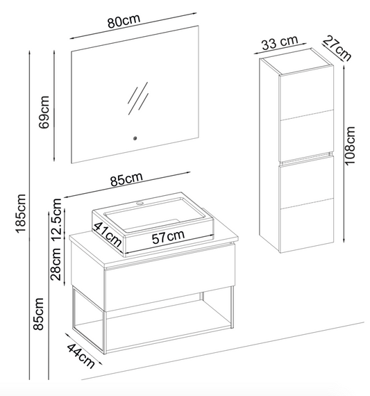 Mobile lavabo + Specchiera con farmacia + Colonna "Marilyn"
